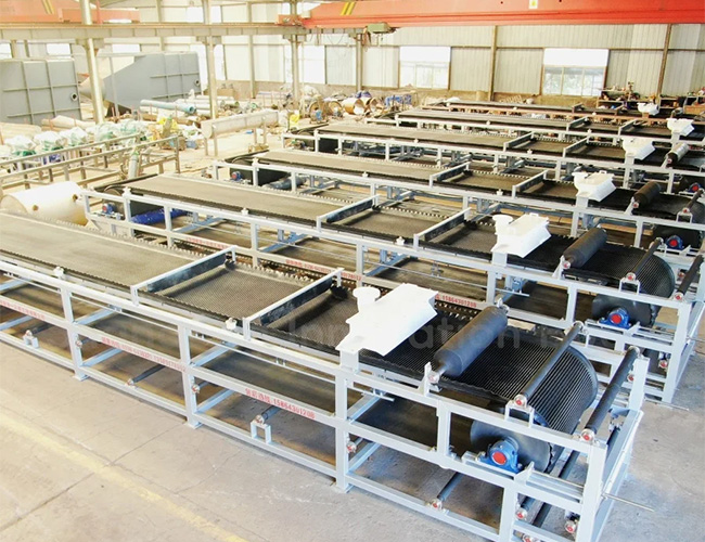 The vacuum belt filter impelled by a vacuum pump, it achieves remarkable effect in liquid and solid separation. Vacuum belt filter is able to continuously complete filtration, washing, dewatering, discharging and filter cloth cleaning. The liquid produced in the filtration and washing program can be collected separately. Plus, the belt filter system realizes fair current and countercurrent washing. A modular structure is designed with this equipment, allowing for flexible installation and convenient transport.