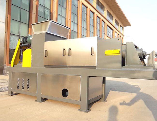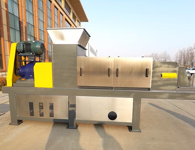 Spiral press is a dehydration equipment that utilizes physical pressing methods. The equipment is composed of motor drive system, feed box, spiral propeller, screen, hydraulic control device, liquid collection tank, frame etc. Materials enter the screw press from the feed box and it is pressed by gradually increasing pressure under the transportation of the spiral propeller. Excess water is discharged from the outlet through the screen, The dehydrated material is discharged from the discharge port under the continued transportation of the spiral propeller.